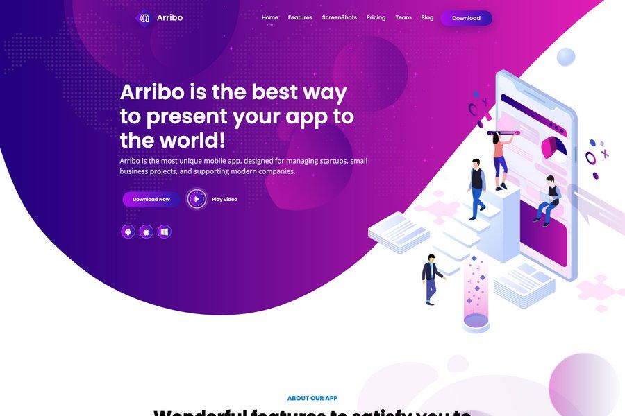 Arribo is another modern and elegant template from a seller of ThemeForest. This app suits for promoting the application. It is based on the botstrap4 grid system with a responsive feature.